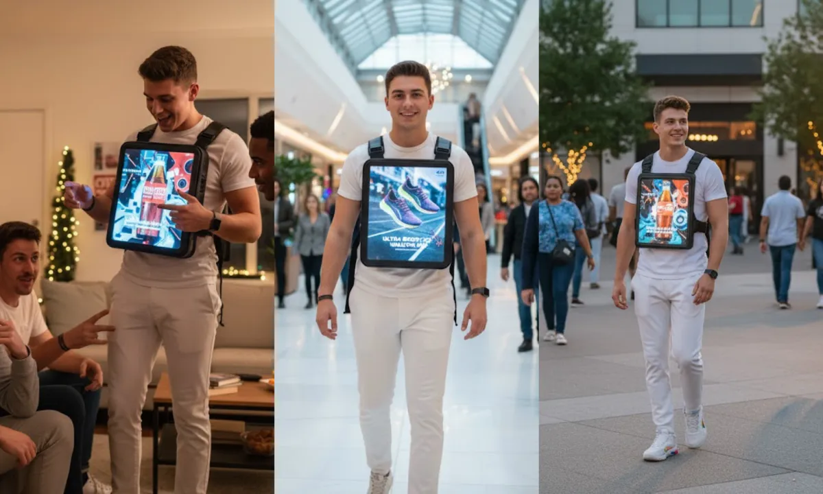Mobile advertising that moves with the crowd. Real-time brand activations through wearable digital billboards that create instant engagement.